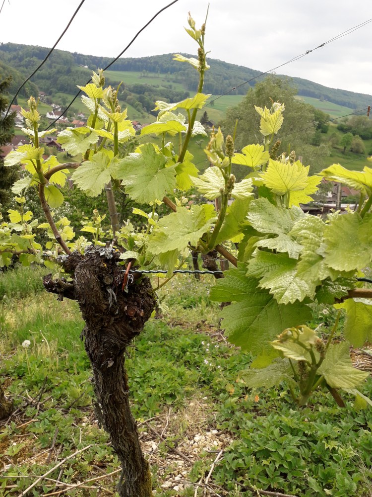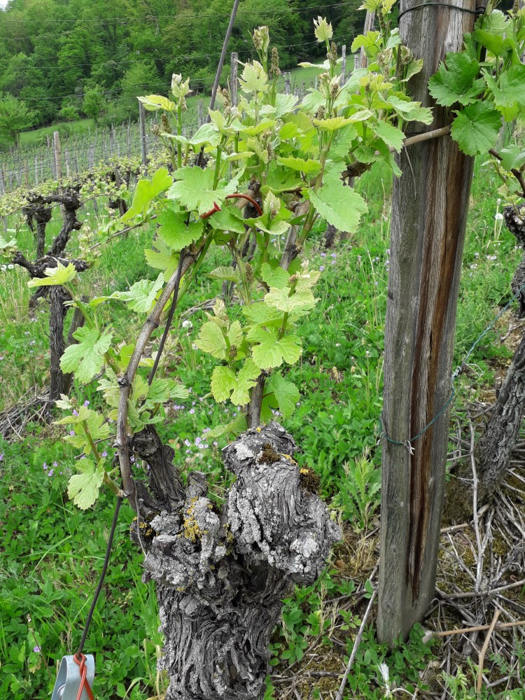 Die Arbeit in den Reben verteilt sich beinahe über das ganze Jahr hinweg. Im Winter werden die Reben geschnitten, ein Zweig zu einem Bogen gebunden. Kurz nach dem Knospenaustrieb, werden Doppelschosse entfernt. Die schnellwachsenden Schosse müssen mehrmals eingefädelt werden. Nachdem sie über die obersten Drähte hinausgewachsen sind, werden sie oben geköpft. Nun müssen die Trauben vom Laub befreit (auslauben) werden. Bei einem reichhaltigen Traubenbehang werden die Trauben ausgedüngt.