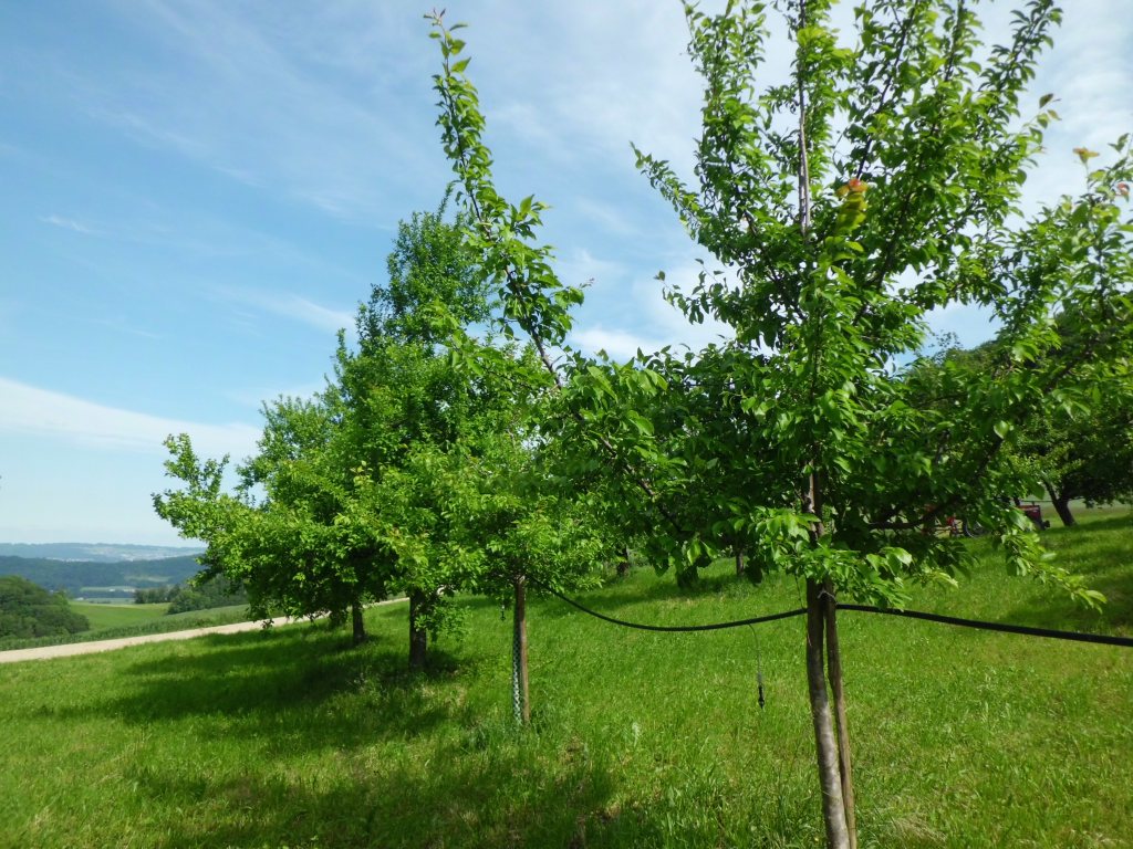 Unser Hof ist nicht Bio, da wir dafür unter anderem die falsche Rebsorte haben, welche selbst beim Bioanbau mit einer Menge Kupfer gespritzt werden müsste.Vom Bund sind aber 7% ökologische Ausgleichfläche gefordert, welche wir mit 30% klar übersteigen. Wir machen im kantonalen Vernetzungsprojekt Agrofutura mit, erfüllen den ökologischen Leistungsnachweis, haben das Label besonders tierfreundliche Stallhaltung, RAUS und machen bei Mutterkuh Schweiz mit.Die Galloway sind über die ganze Vegetationsperiode auf der Weide, bekommen den winter durch Grassilo und Heu. Kraftfutter gibt es über das ganze Jahr keines. Die Kälber bleiben bis zum Schlachtzeitpunkt von Zirka 2 Jahren bei der Herde.